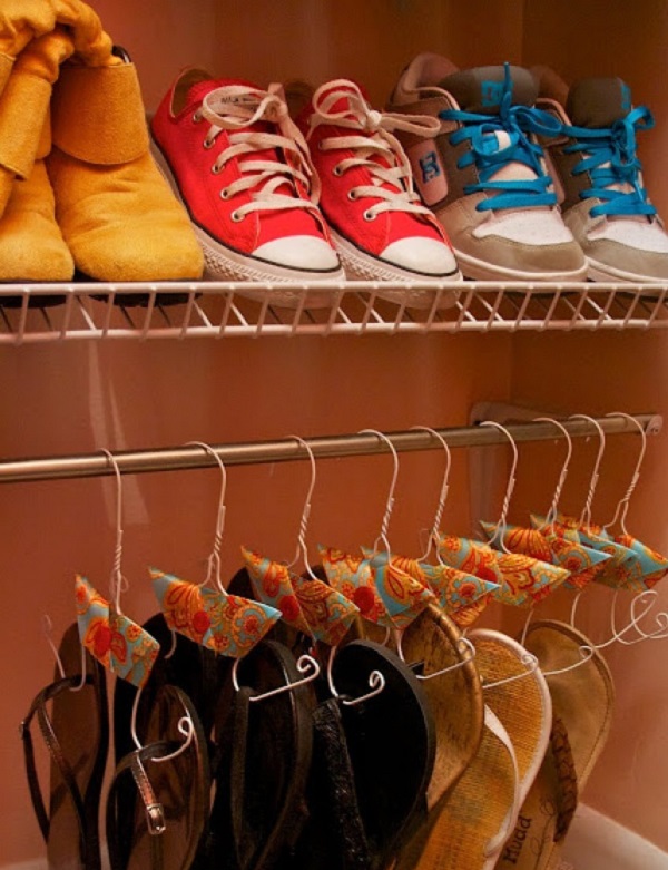 8. Estas perchas de zapatos se ven muy bien. ¡Cuánto espacio se puede economizar!