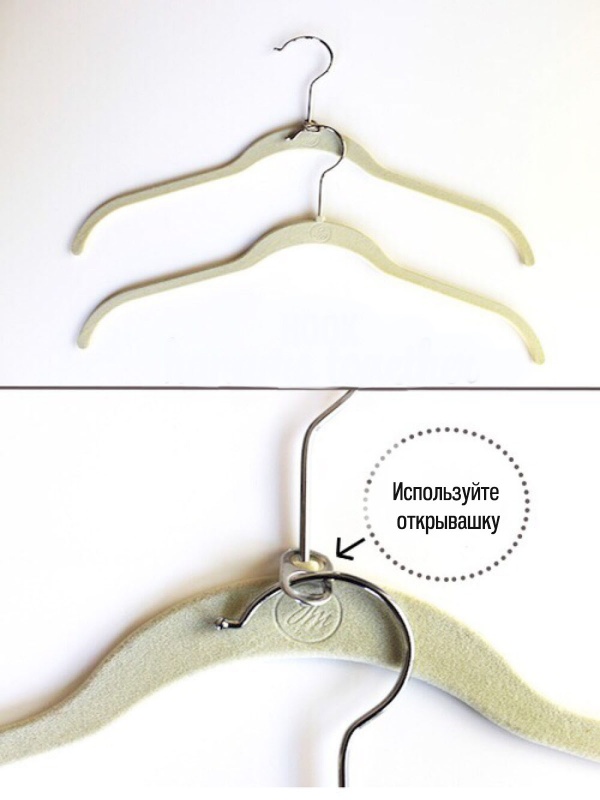 9. Abrelatas de estaño te ayudará a unir dos perchas en una. El doble de cosas para colgar…