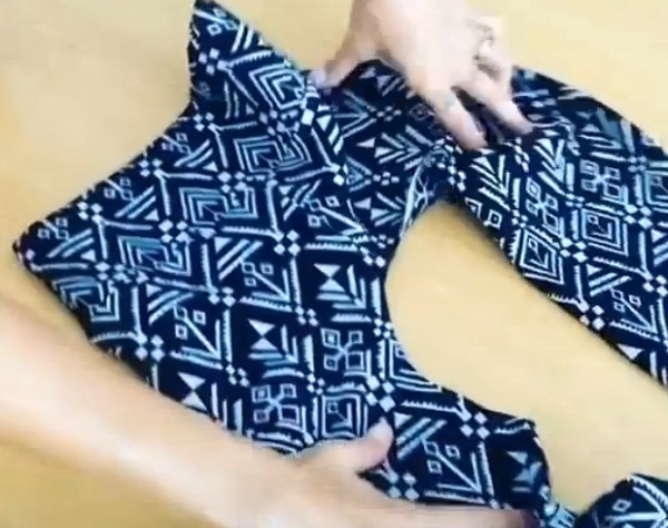 Mira el video de cómo esta chica hizo una preciosa y cómoda blusa de mangas largas, de viejas lycras estampadas.