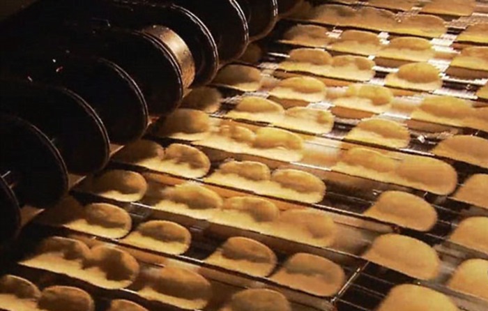 Después de todos estos procedimientos, esta delicia está casi lista para su uso. ¡Ahora sólo resta empacar! En la etapa final, un empleado especialmente entrenado, verifica que los aperitivos cumplan con los parámetros externos, y se asegura de que sean colocados uniformemente sobre una cinta transportadora.