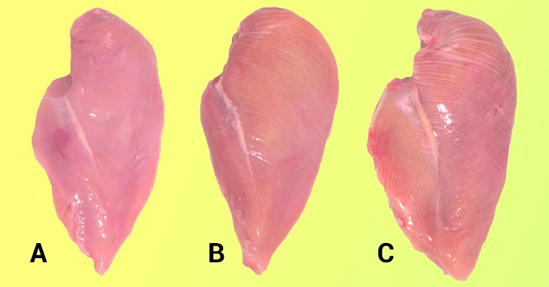 Lo primero es mirar detenidamente el pollo que se va a comprar. ¡Si observas líneas blancas, en cualquier caso, no lo tomes! Estas rayas blancas indican que el pollo estaba creciendo demasiado rápido, y su tejido adiposo se fue desarrollando de manera desigual. Dicha carne contiene grasas y aditivos nocivos, y, por desgracia, puede ser no sólo de mal gusto, sino también muy perjudicial para la salud.