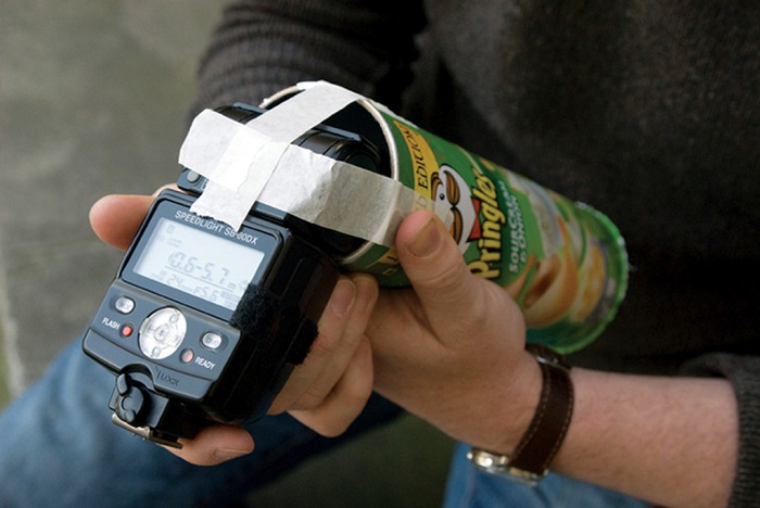 14. La luz del flash se puede disipar con una botella de leche o un pedazo de plástico mate.