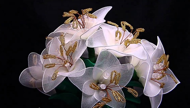 2. También las artesanas habilidosas arman de medias de nylon flores increíbles. Antes de proceder a la fabricación, el material pasa por un proceso de teñido.