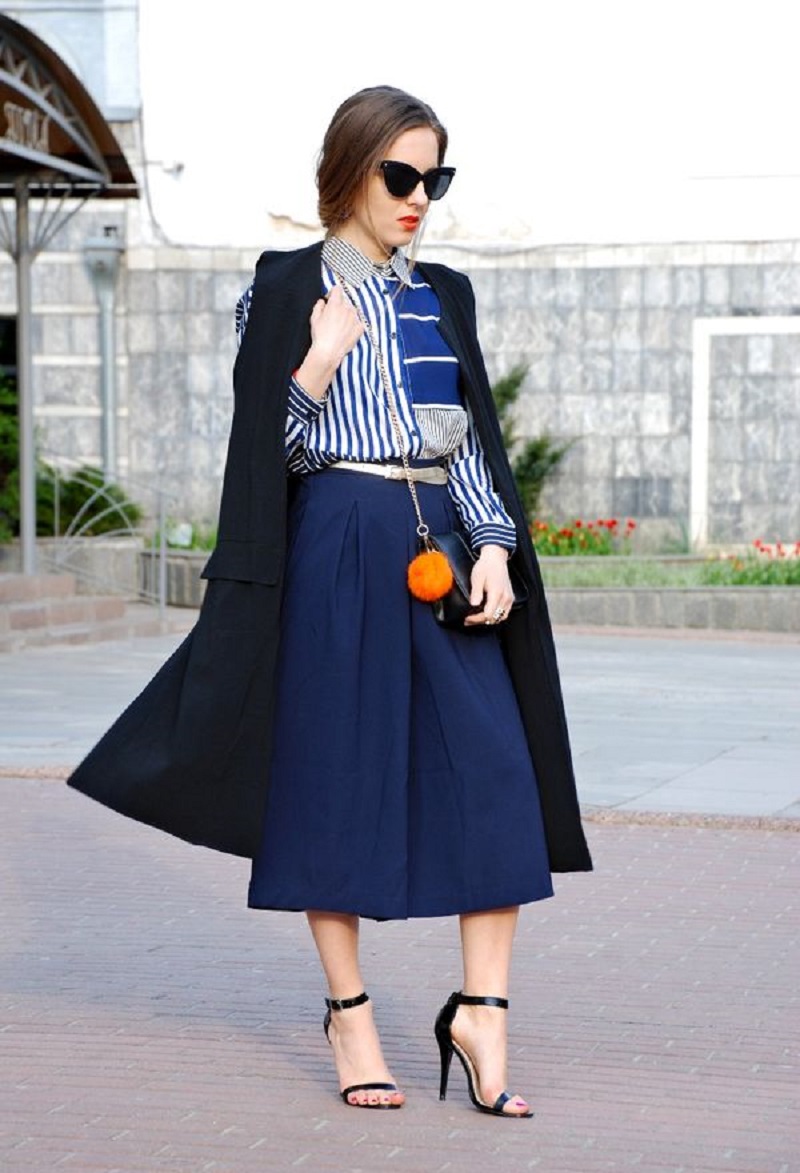 Para llamar la atención, de una manera elegante, la mayoría de las mujeres se decanta por una falda larga, por debajo de la rodilla. Este estilo alarga visualmente la figura, haciéndola lucir más esbelta. Sin embargo, los pantalones rectos, que cubren los tacones de los zapatos, se verán aún más favorables.