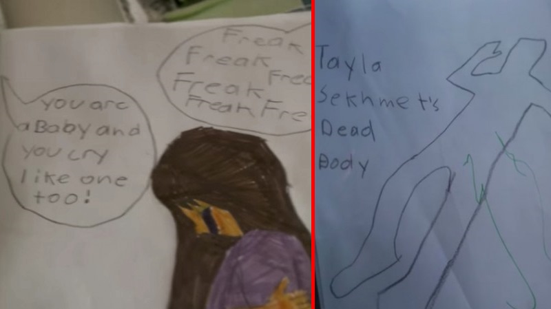 Dos semanas después de la primera visita a la escuela, la madre encontró dibujos de Tayla, empapados de un estado de ánimo suicida. En ellos la chica visualizó su propio cuerpo muerto y escribió que estaba harta de vivir…
