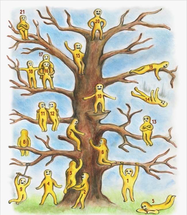 Cada una de estas pequeñas «imágenes» en el árbol presenta un estado de ánimo diferente y ocupa un lugar específico. Para empezar tienes que definir cuál de la personitas se te asemeja más. Luego elige la figura a la que te gustaría parecer.