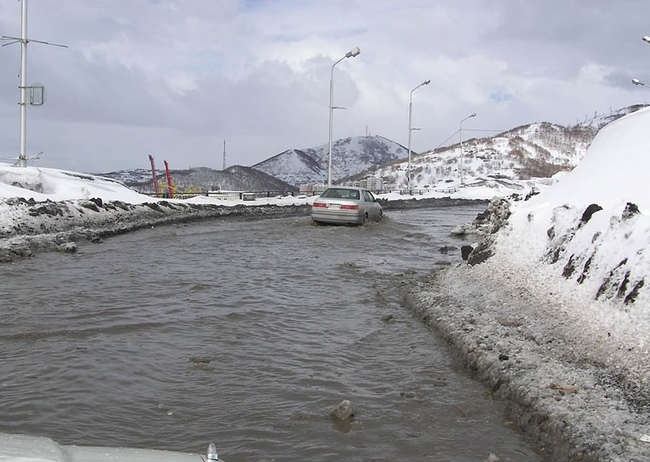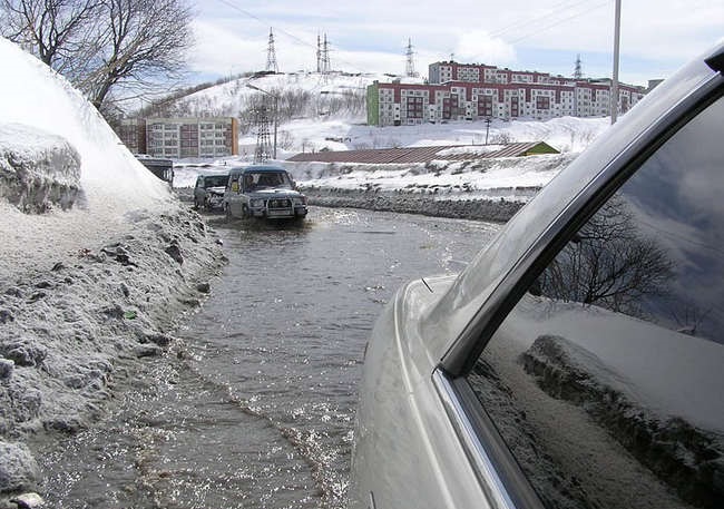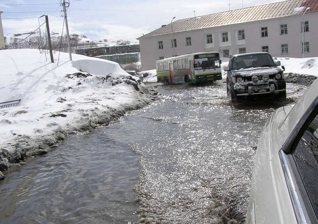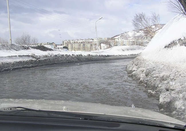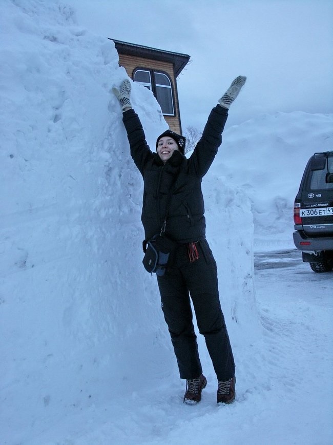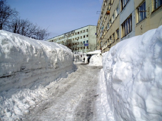 Sin embargo, para los habitantes de Kamchatka, tales condiciones del tiempo son un fenómeno perfectamente normal y habitual. Gracias a la ubicación geográfica, las espectaculares nevadas se producen aquí anualmente. En el invierno, por así decirlo, la gente entran «en un estado de hibernación», porque a menudo, quedan privados de la posibilidad de salir de la casa. Desplazarse en coche en la ciudad, en estas condiciones, ¡es un caso verdaderamente extremo!