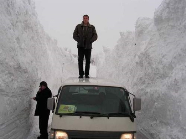 La verdad es que tal fenómeno natural para los lugareños es un acontecimiento bastante común. Después de todo, estas personas en el invierno, casi a diario, se enfrentan a fuertes nevadas ¡y gra-a-andes montones de nieve!