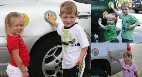 13. Estas pegatinas brillantes en el coche ayudarán a los niños a no perderse en el estacionamiento. ¡Muy útiles para enseñarles a mantenerse al lado de tu coche!