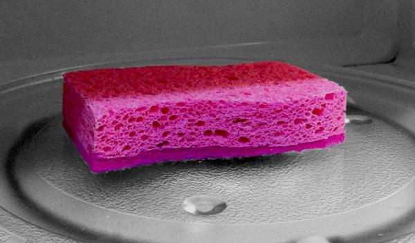 Simplemente deje la esponja en el horno de microondas al nivel máximo por 2 minutos. 99% de los microbios mueren tras este procedimiento . Alternativamente, se puede lograr lo mismo usando el lavavajillas.