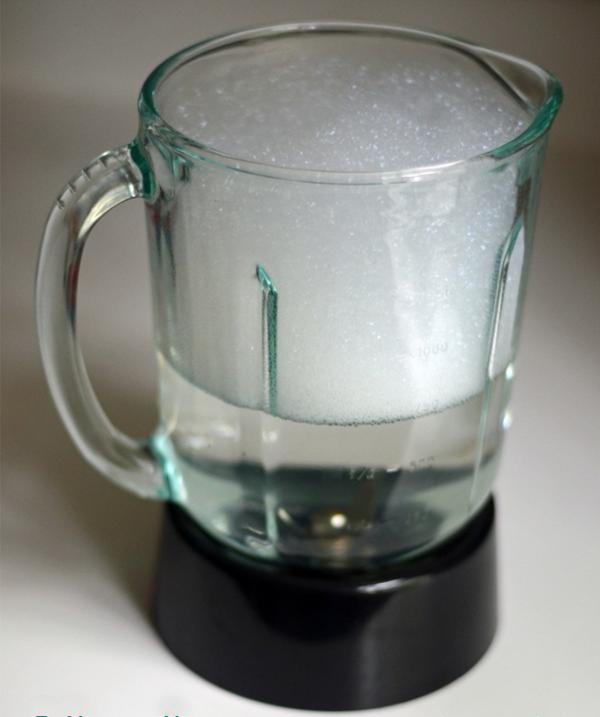 Llene la licuadora con agua tibia y unas gotas de líquido de fregar. A continuación, enciéndela por unos segundos. Solo queda enjuagar con agua limpia, escurrir y secar.