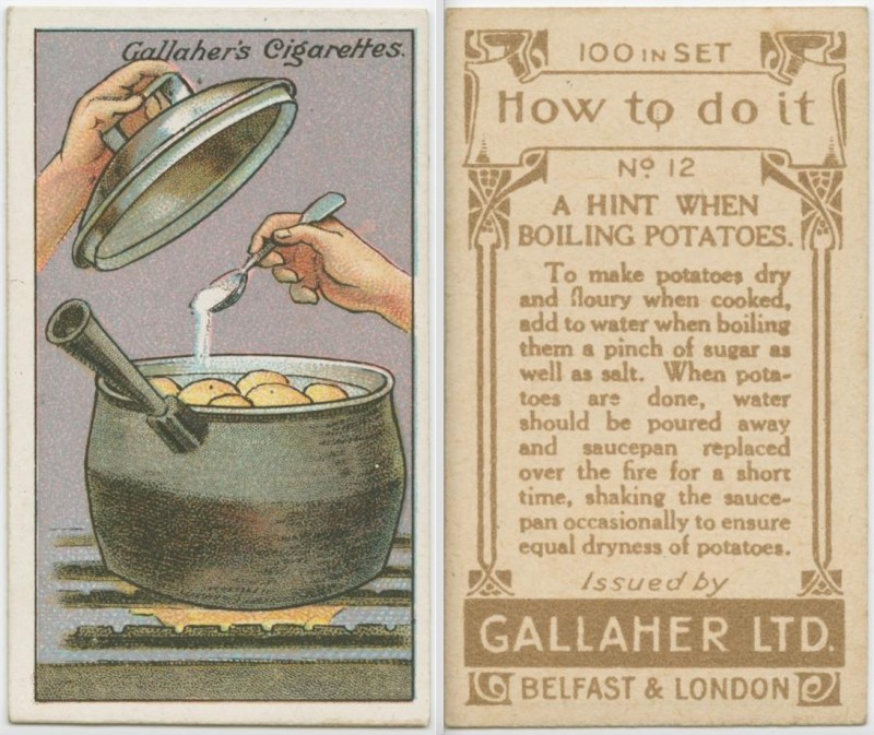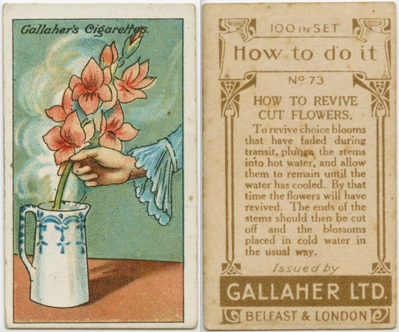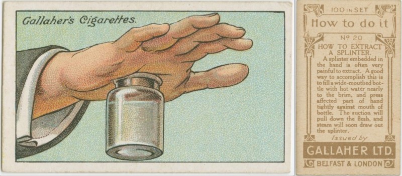 En 1910 los mercaderes de Gallaher, una marca de cigarrillos, decidieron atraer nuevos clientes con la ayuda de la siguiente idea original. Pusieron dentro de los paquetes de cigarrillos unas tarjetas especiales donde estaban escritos diferentes consejos útiles.