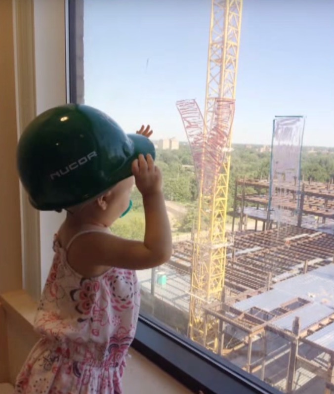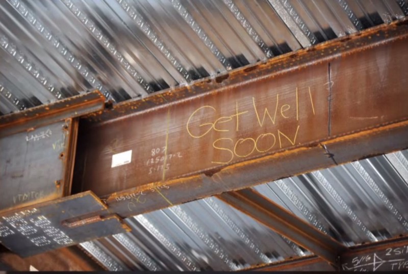 Cuando la construcción del edificio alcanzó el noveno piso y quedó frente a la ventana de Vivian, los trabajadores decidieron hacerle una sorpresa a la pequeña. En una de las vigas que estaban montando, escribieron: «¡Que te mejores pronto!».