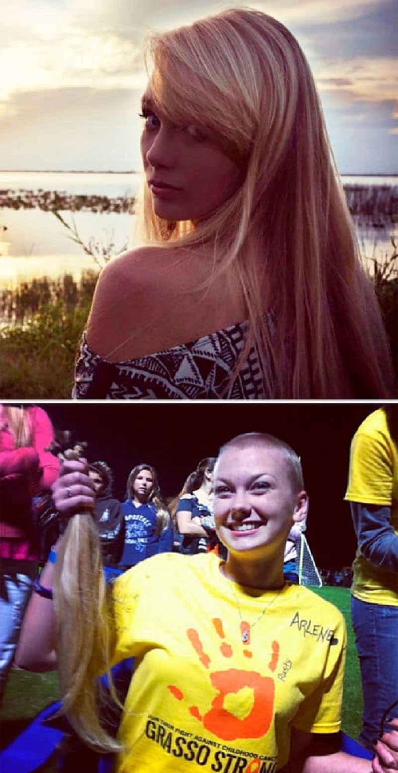 - Esta chica renunció a su largo cabello, para apoyar a su maestro, cuyo hijo estaba enfermo de cáncer.