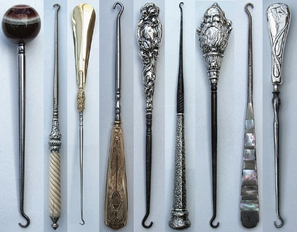 Eran los tiempos en que la cremallera no se había inventado aún, y allí donde no había lugar para los botones, se usaban ganchos comunes. Había pequeños – para los guantes, la ropa interior, y los más grandes – para el calzado.