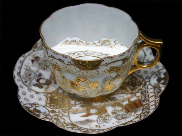 ¡Sí, sí! Fueron inventadas desde hace mucho tiempo, cuando el bigote estaba muy de moda y, por su puesto, tenía que estar siempre en perfecto orden. Por eso la taza común, se transformó, y le apareció un tal… bueno, eso mismo… ¡En fin, era conveniente! Parece que hoy día, esta tasa es nuevamente actual.