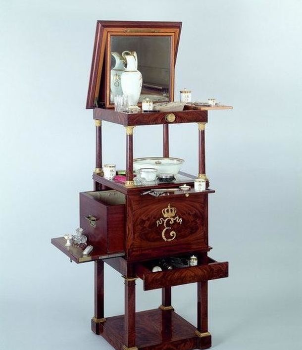Se sabe que en el pasado, los hombres también usaban polvos, llevaban pelucas y tenían que mantenerse arreglados, al estilo de aquellos tiempos. Por lo que, para viajar, llevaban cajas con múltiples compartimentos. Peines, espejos, pomadas y todo tipo de artefactos para uñas, cabello y así sucesivamente. Y pañuelos de repuesto, botones, encajes…