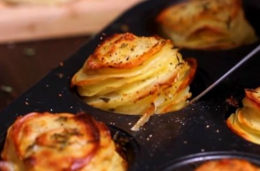 3. Coloca los triángulos listos dentro de un molde hondo, previamente engrasado.