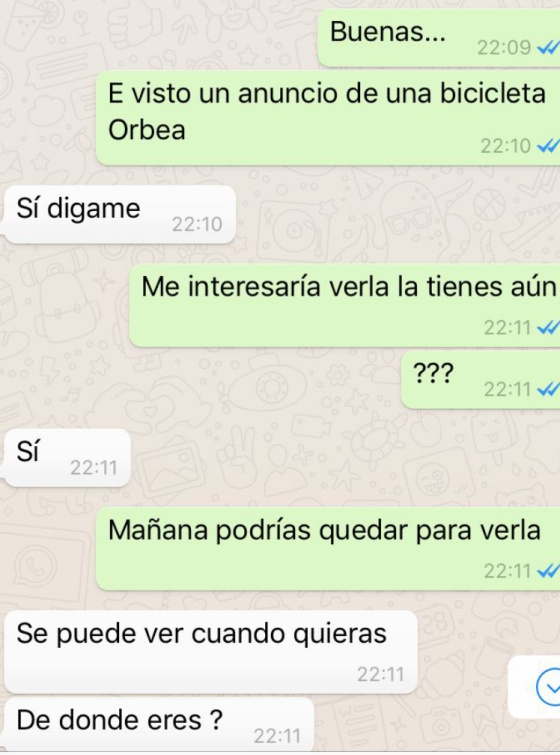 No pasó mucho tiempo, apenas dos semanas después del robo, hasta que la bicicleta apareció en la red. «Un amigo me avisó de que había visto una bici como la mía a la venta en un grupo de compraventa de artículos para ciclismo», – cuenta. Y no fue el único… «No paraban de llegarme whatsapps. Me decían: «¡La he visto en Wallapop!», «¡La he visto en MilAnuncios!», «¡La he visto en Facebook!».