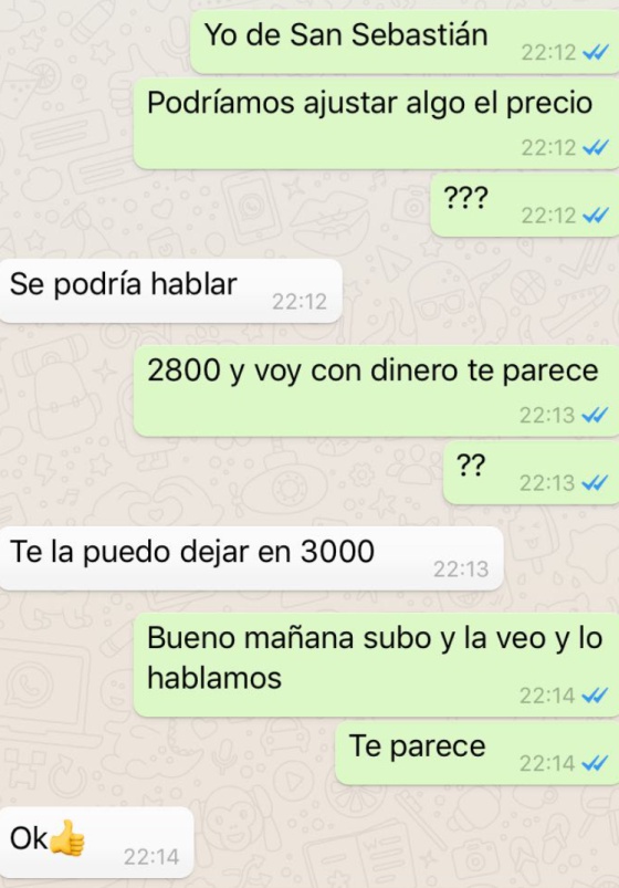 El ciclista tenía que actuar rápido: según el anuncio, el vendedor estaba intentando vender la bicicleta por piezas en Burgos, que está situada (a más de 200 km de Tudela), y ya había recibido unas cuantas ofertas. Si lograban desarmar la bici, sería muy difícil dar con ella. Así que se le ocurrió una magnífica idea: escribió al vendedor y le dijo que se la compraba al día siguiente, lunes 30, entera y en efectivo.