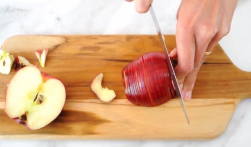 Primeramente debes lavar las manzanas y extraer el núcleo con las semillas. Luego córtalas en rodajas finas.