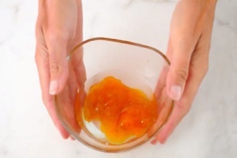 Mezcla 3 cucharadillas de mermelada de albaricoque con 2 cucharadillas de agua, coloca la mezcla en el microondas por 1 minuto.