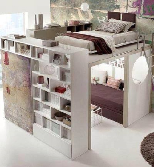 7. Una habitación de dos niveles es doblemente funcional: Arriba — el cuarto, abajo — la oficina.