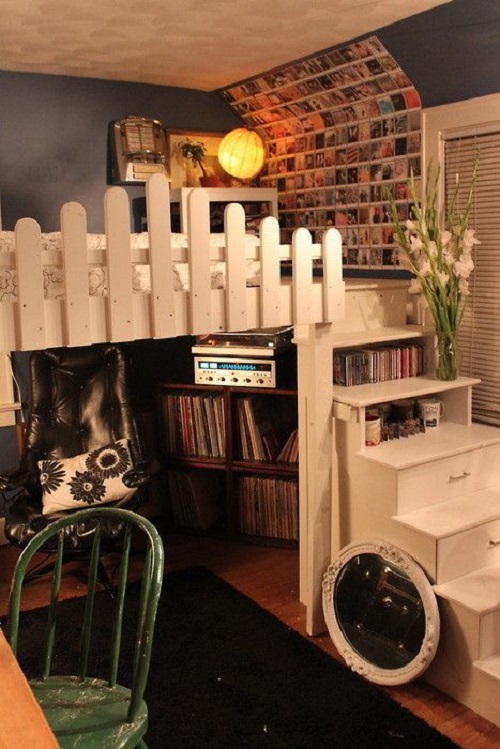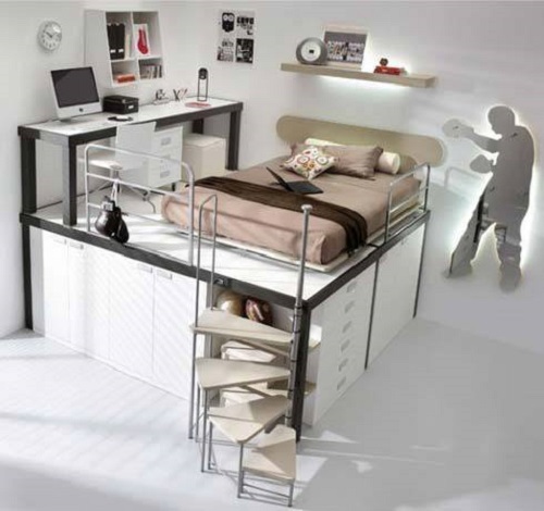 7. Una habitación de dos niveles es doblemente funcional: Arriba — el cuarto, abajo — la oficina.