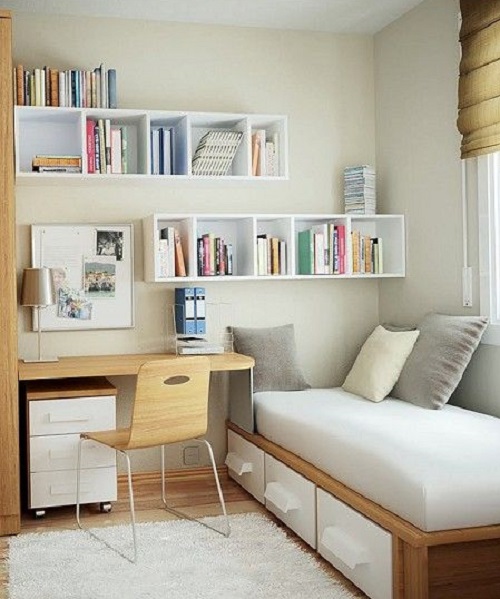 33. Una habitación para un estudiante, decorada al estilo ascético.