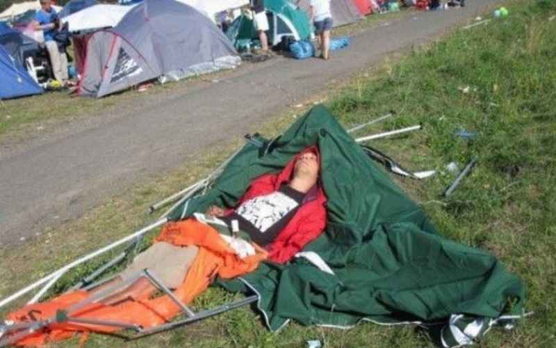 ¿Para qué pasar trabajo, instalando la carpa? ¡Así también se puede dormir!