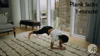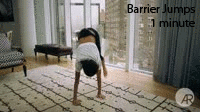 8. Mueve el peso de tu cuerpo hacia las manos, impulsándote con los pies unidos, saltando alternativamente hacia ambos lados.