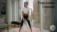 2. Pon tus codos en el suelo. Abre y cierra los pies durante el salto.
