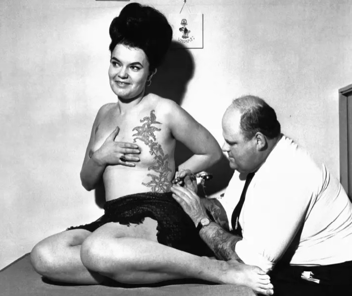 El trabajo del artista del tatuaje, Ronald Austin, 1960.