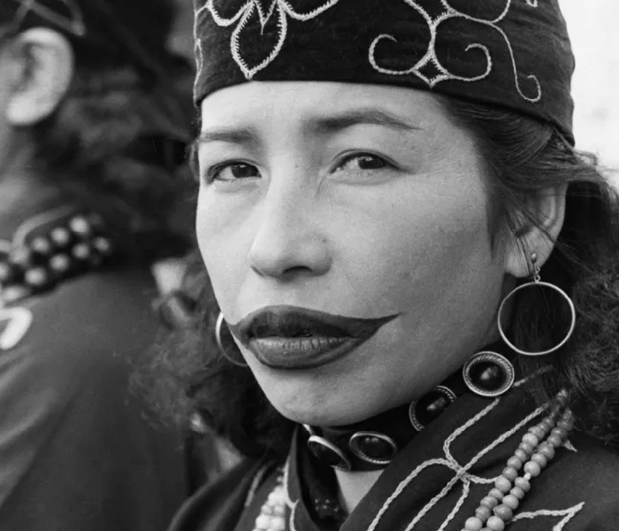 Esta mujer, llamada An Ainu, se hizo un tatuaje sobre sus labios, para ocultar una cicatriz sobre su labio superior.