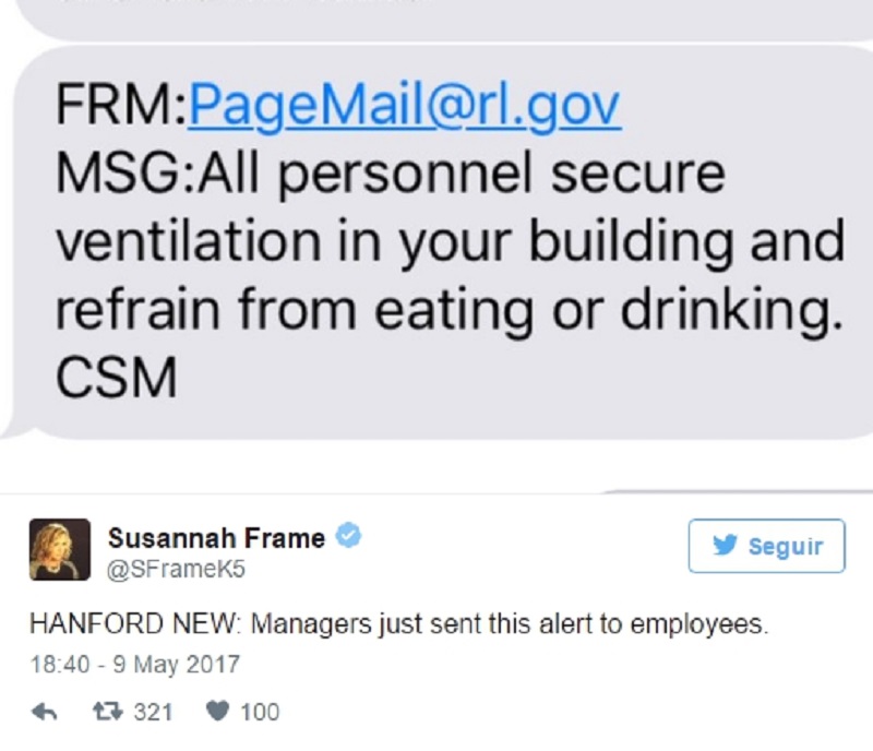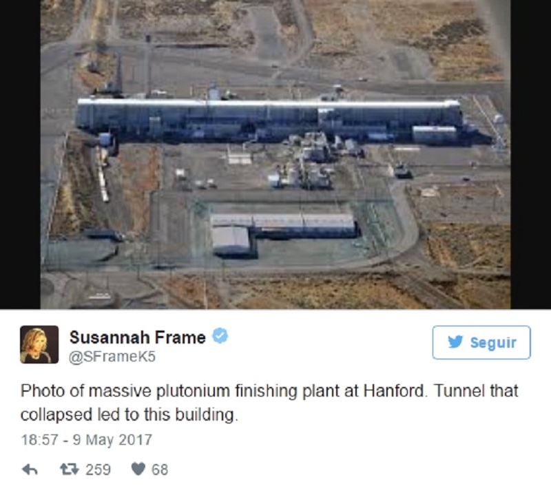 En el Estado de Washington, en un almacén de residuos nucleares, ubicado en Hanford, en la mañana de este martes, fue declarada la situación de emergencia, debido al hundimiento de un túnel, lleno de residuos radiactivos. Cientos de trabajadores recibieron la orden de ponerse a cubierto. Las primeras informaciones indican a que no hubo víctimas, tampoco se ha detectado un aumento de la radiación en la zona.
