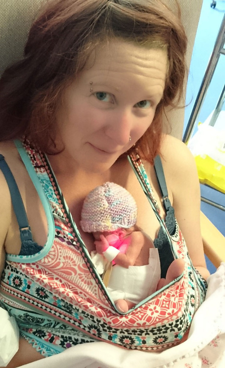 Conozcan a esta pequeña criatura en manos de su mamá — Pixie Griffith Grant. Ella nació a las 28 semanas, por cesárea.