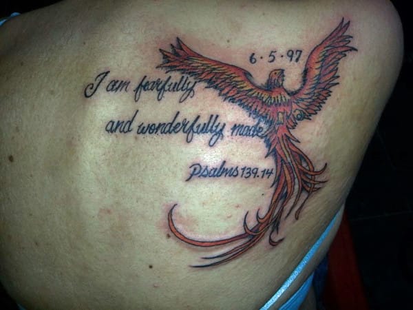 Pero un día la chica se atrevió a dar un paso increíble. Ella decidió hacerse en su espalda un tatuaje simbólico, representando las alas de un ave Fénix y unas palabras «Soy una creación admirable». Estas palabras fueron tomadas de la Sagrada Escritura (Salmo 139). Harley convirtió estas palabras en el lema de su vida.