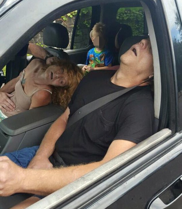 Más tarde se descubrió que, sentado al volante, estaba James Akord, y junto a él, su esposa Rhonda Pasek, mientras que en el asiento trasero, se encontraba su pequeño hijo, de 4 años de edad. Los adultos estaban inconscientes, sin poder explicar absolutamente nada, completamente drogados, bajo el efecto de la heroína.