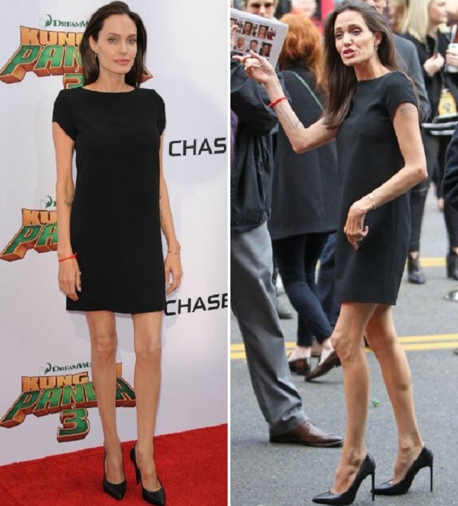 Anteriormente en 2014, en el estreno de «Maleficent», Jolie también sorprendió a los periodistas con un contraste sin precedentes: las piernas flacas y una tez saludable.