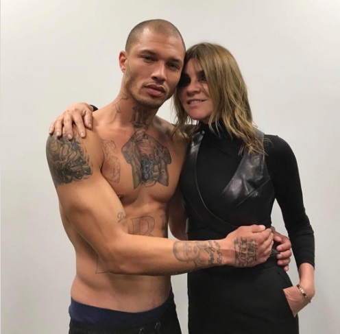 El joven también compartió una fotografía en su cuenta de Instagram, posando con Carine Roitfeld, ex editora de la revista Vogue Francia, a quien tiernamente llamó «mi nueva amiga».