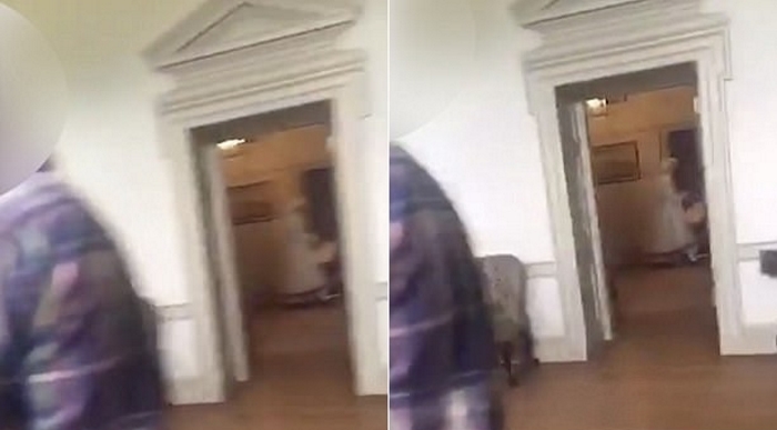 Bueno, a decir verdad, lo vieron un poco más tarde, mientras revisaban el video grabado en el palacio. La figura de una sirvienta destellaba en el fondo. La mujer vestía ropa típica del siglo XVIII, y sostenía un cesto de ropa en sus manos. Es interesante que, durante la excursión, las chicas no vieran a nadie así, y la figura apareció sólo en el video.