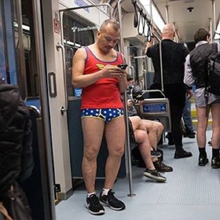 Los británicos, sin importar la edad, el sexo o el tipo de cuerpo, entraron al metro en bragas y calzoncillos. Sin embargo, no te olvides de un detalle importante: ¡Es invierno!