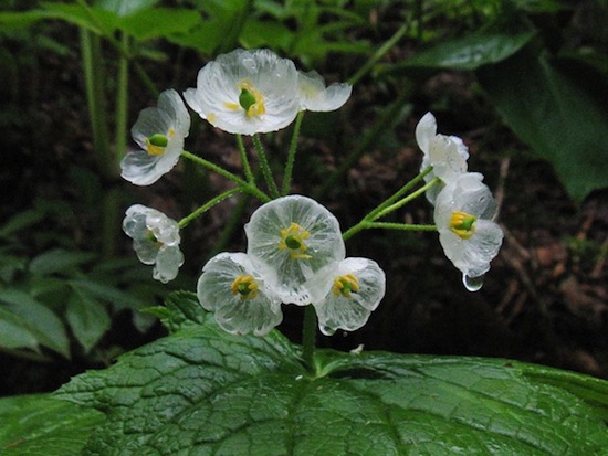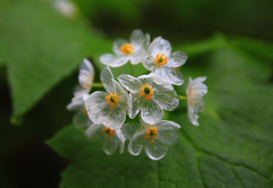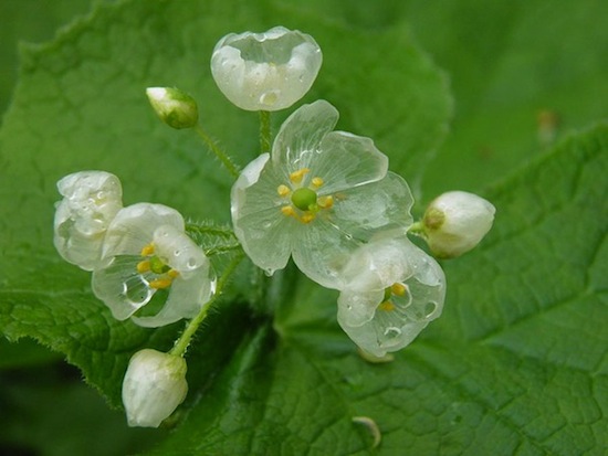 El nombre científico de esta maravillosa flor es Diphelleia grayi, y es tan rara y poco distribuida en el planeta que solo puede ser encontrada en tres lugares del mundo. Esta delicada y bella representante de la flora prefiere frías y húmedas, boscosas laderas de montañas de Japón, China y los Montes Apalaches en los Estados Unidos. Puede ser reconocida por sus grandes y hermosísimas hojas verdes, que tienen aspecto de un paragua y le dan el amparo a pequeños y delicados ramilletes de flores blancas.
