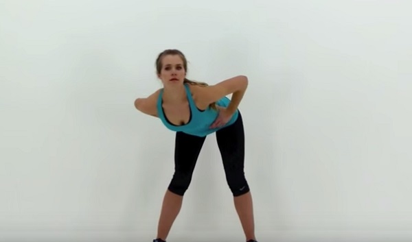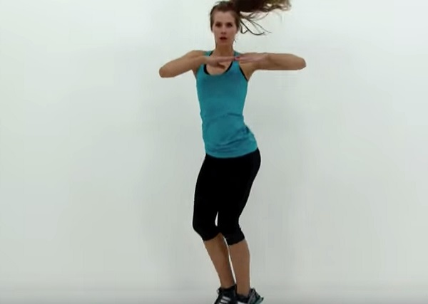 Dobla los codos, a la altura del pecho. Comienza rápidamente a saltar y a girar el cuerpo en diferentes direcciones. Los giros deben realizarse, forzando a trabajar activamente los músculos oblicuos del abdomen. Mira recto delante de ti, salta lo más rápido posible.