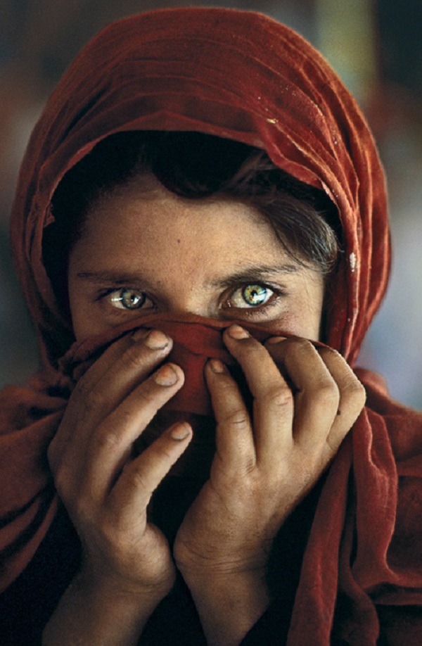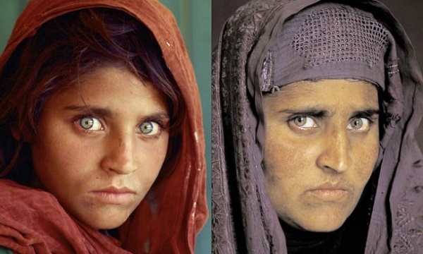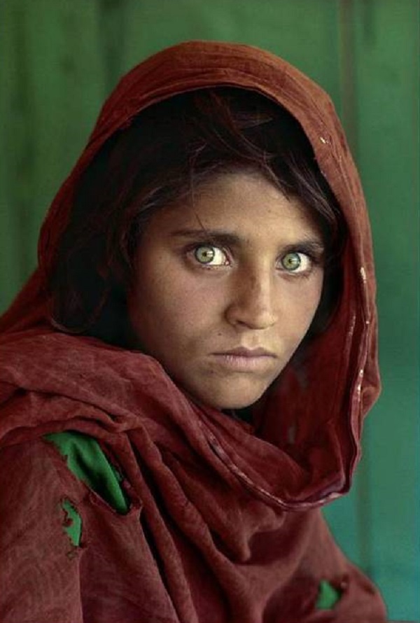 Esta imagen de la niña afgana, que ha conmocionado al mundo entero, fue hecha por el fotógrafo Steve McCurry en 1984, durante la guerra en Afganistán. En búsqueda de materiales sobre la guerra, él visitó un campamento de refugiados Nasir Bagh, en la frontera entre Afganistán y Pakistán. En la tienda de campaña de la escuela primaria, una chica con una mirada inusual llamó su atención. La maestra dijo a Steve que los padres de la niña murieron durante un ataque a su aldea natal, y ella, junto con sus hermanos, hermanas y abuela logró escapar. Caminando a pie a través de las montañas, por espacio de dos largas semanas, la familia llegó a la frontera. El periodista tomó una foto de la niña, sin saber que esta imagen recorrería el mundo. Con el apuro, incluso se olvidó de preguntar por el nombre de la chica, solo anotó su edad, 12 años.