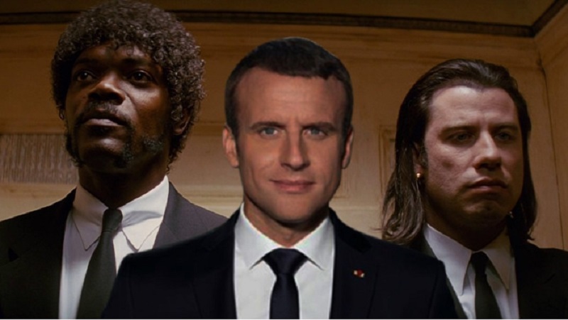 - Macron, Samuel L. Jackson y John Travolta en «Tiempos violentos»
