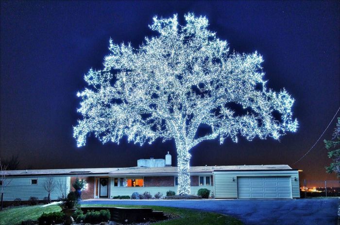 Hermoso árbol festivo, adornado con miles de linternitas LED.