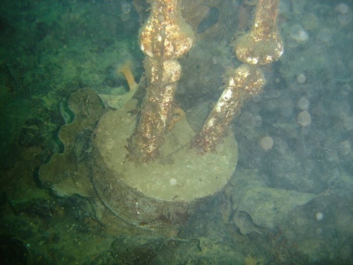 Espeluznante, pero singular cuadro. Restos cementados de una víctima de la mafia, en el fondo de un estanque.