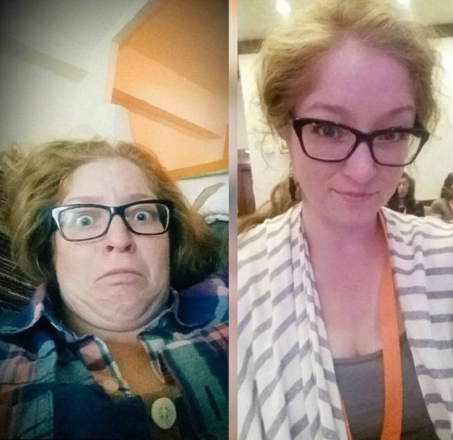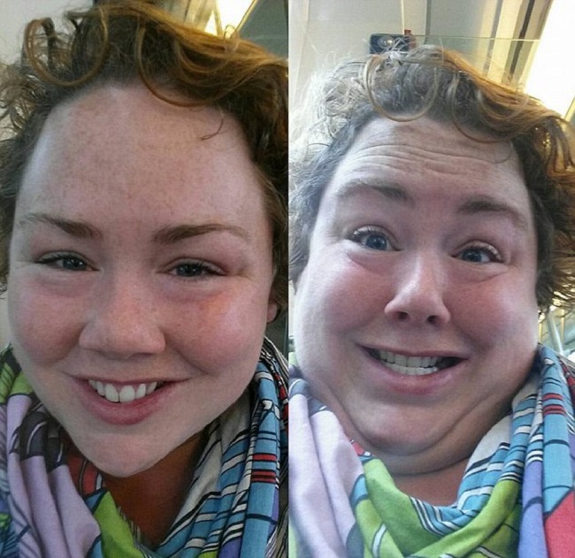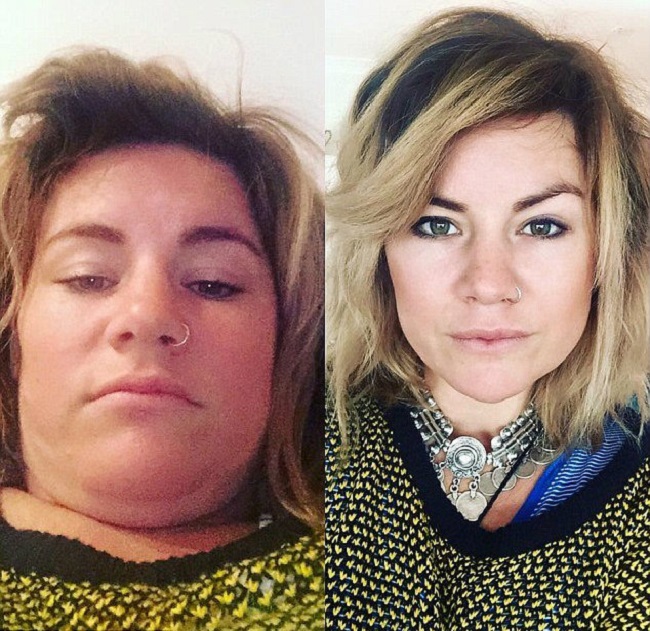 Constanza Hall, una entusiasta de 32 años de edad, de Perth, Australia, publicó en su Facebook un par de autoretratos, hechos con una diferencia de pocos segundos. Al parecer, el resultado le impresionó tanto, que no dudó en hacerlo público. En los comentarios, Constanza señaló que la foto la afecta absolutamente todo: el color y la luz, la postura y los filtros. ¡Naturalmente!