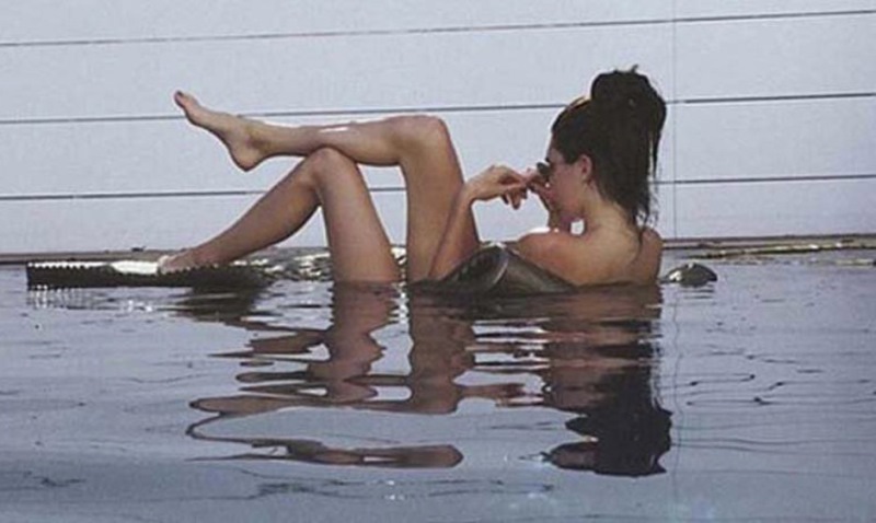 Esta otra foto, también eliminada, presenta a la estrella en la piscina.